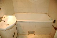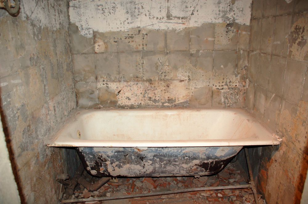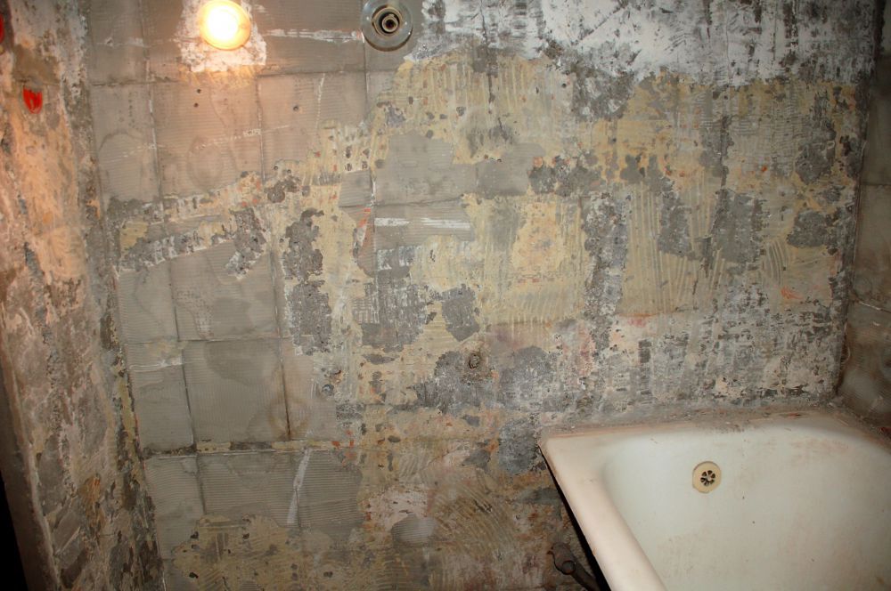 Első fázisban le kellett szerelnünk a fürdőszoba kellékeket, majd a mosógép, mosdó, és kád kiszerelése következett. Ezután kezdődhetett a csempe, padlólap, és kád bontása, illetve az ajtó kiszerelése.